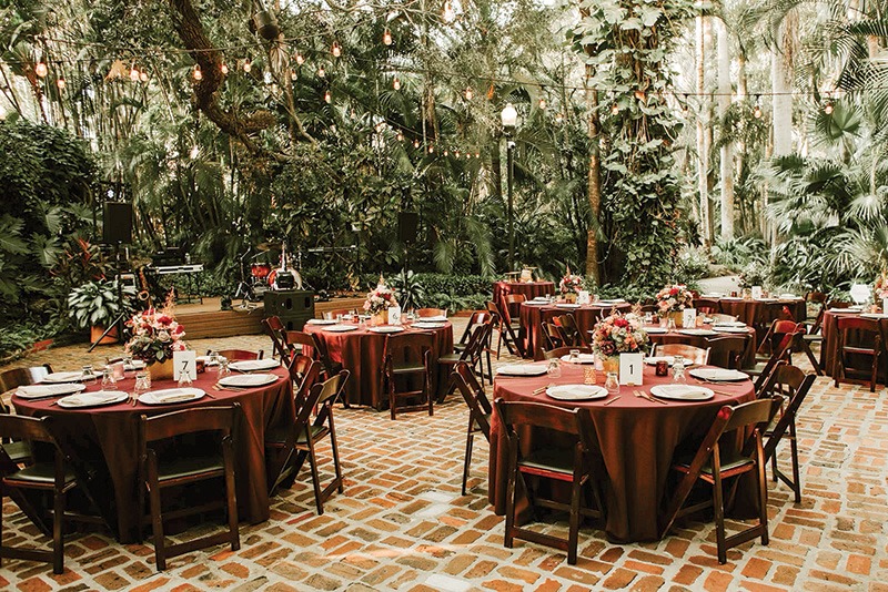 Sunken Gardens invites groups to step into a world of tropical tranquility, seemingly worlds away from the hustle and bustle of St. Petersburg. Once the city’s best-kept secret, this century-old botanical garden transforms after hours into a serene setting surrounded by lush greenery, colorful blooms, and the soothing sound of waterfalls. The venue’s flexible spaces make it easy to customize the flow of an event—attendees can be greeted with cocktails at the Fountain Plaza before strolling the pathways to the Oak Pavilion for a seated dinner or networking reception. Larger gatherings come to life beneath a tent on the Wedding Lawn, while the amphitheater provides a naturally beautiful spot for intimate presentations or live entertainment.